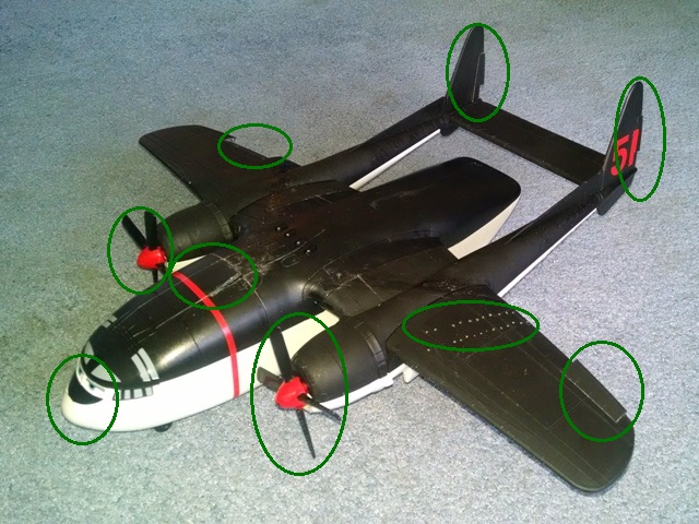 one wing and the side.  Then I went to scaring up the leading edges and props.