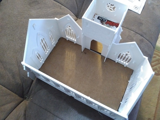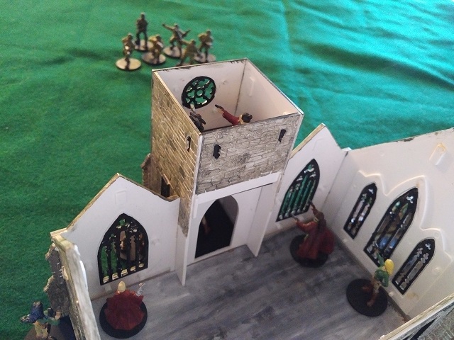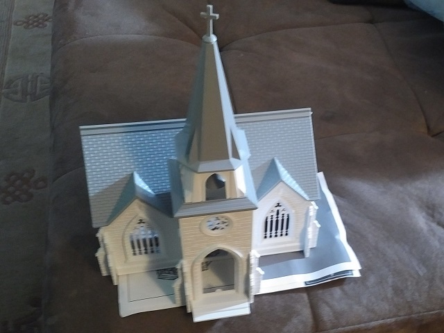 The first bit is setting up the steeple. I will glue the roof on the steeple, but I will not glue the steeple on the tower. This allows it