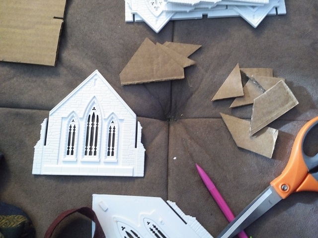 Using the peaks of the walls as a guide, I cut some carboard joists