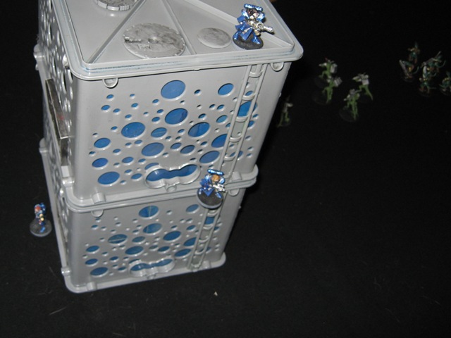 Here are some Sisters of Battle on a two-story. Since the crates also stack