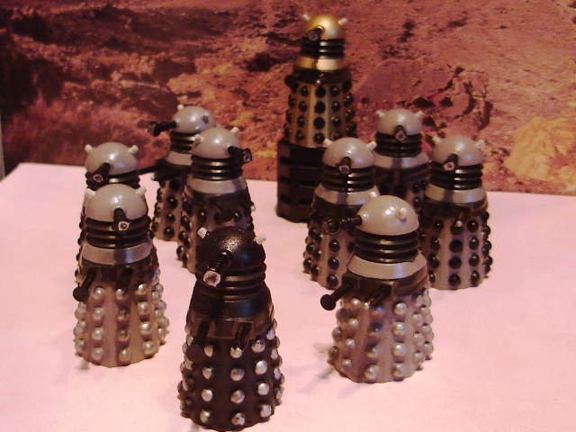 OK, so around July these guys came out as a part of a Dr. Who toy line. The overwhelming majority of the figures are nice for what they are, but not what I would want to game with -- they're a little too chibi (OK, the chibi cybermen are cute). The Daleks, however, are really nice, and very ... well ... Daleky. (So is the TARDIS, but that will have to wait for another time.) So, they are nice figures, but they're toys, so can you really game with them? What about the scale?