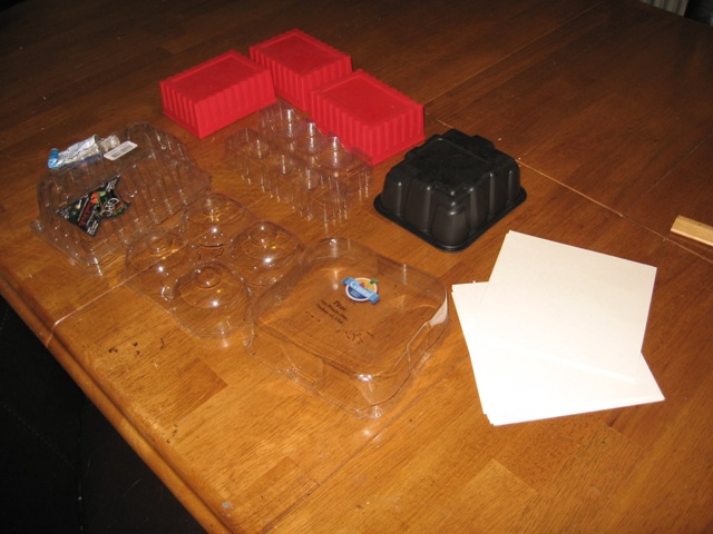 over containers, 6"x6" thin card bases, a bit of miscelanea,