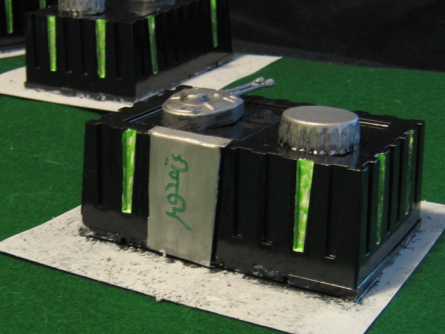 There's what the holes in the roof are for ... turrets!. Just basic black and