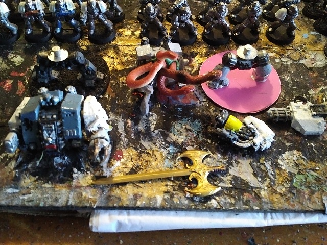 Here are a couple borken GW 40K dreadnaughts I got. The legs on the base and