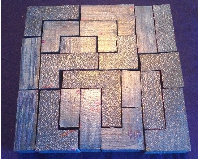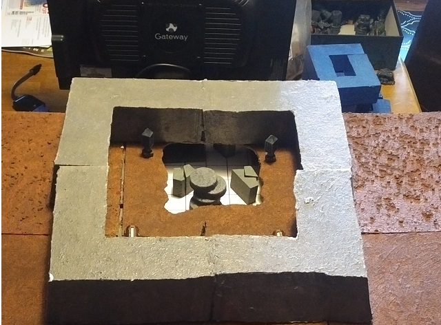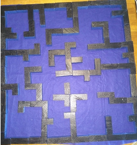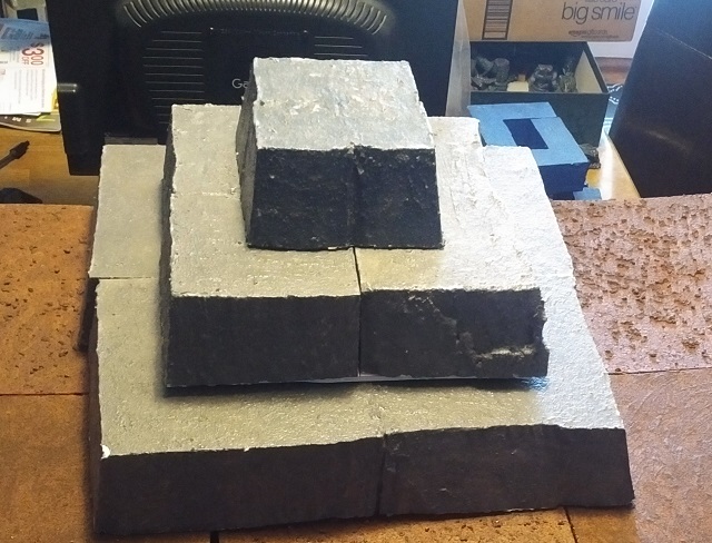 foam (1 1/2 inch tall), tetrised into useful shapes based on an inch and