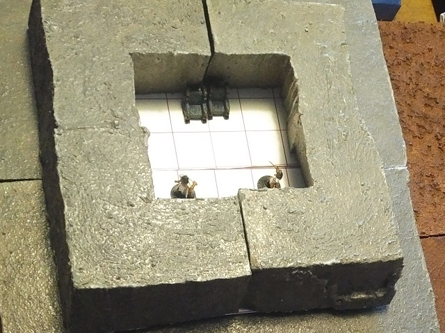 Now we cover with dirt tiles. I happen to have a dirt tile with the center carved