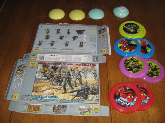 Later on, I will grab some plastic bottlecaps and leftover guns from