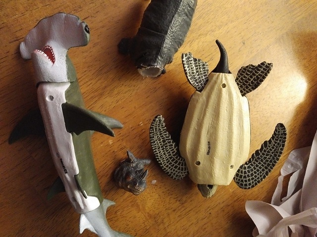 The sea creatures (from a toystore $5 for 5 toys sale item), come apart