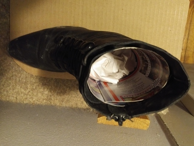 thin cardboard in a tube shape to hold up the boot. So, basically