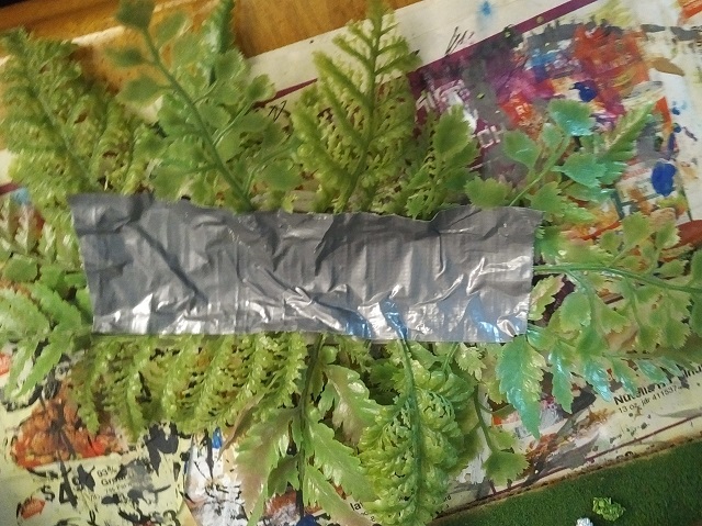 Between the purse and the roof, I will put some vines. I laid down a stripe of duct