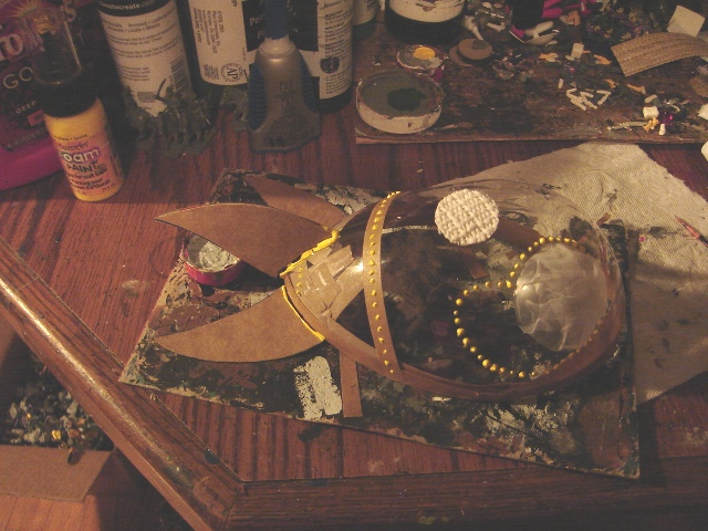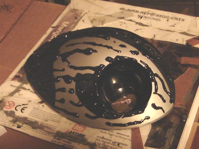 A key element is the Scotch tape over the "eye". I am going to spray paint this silver as a base coat, but I want the eye to be a transparent widow/dome, so I masked it off.