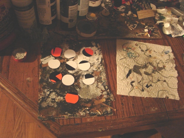 The second method [below] is one I have used before (with formed plastic mouse packing material) to make a giant fish. Basically, you alternate two coats of spray adhesive, then dots from a three hole punch (or other confetti of your choice). Then you need to prime it, too. I use Krylon Fusion as it adheres to almost everything and gives you a nice surface to paint on. C'mon ... we're cheaping out on all the parts. You need to go for the good stuff here.