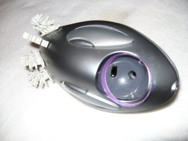 Here is two trackball mice, glued together on the stand. I had to bend the top prongs