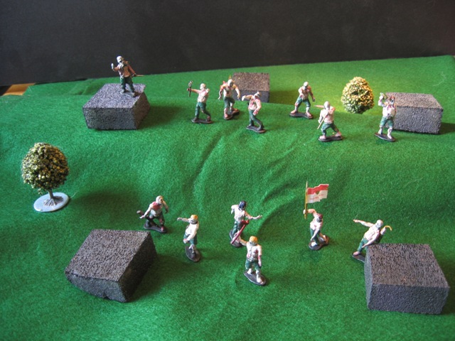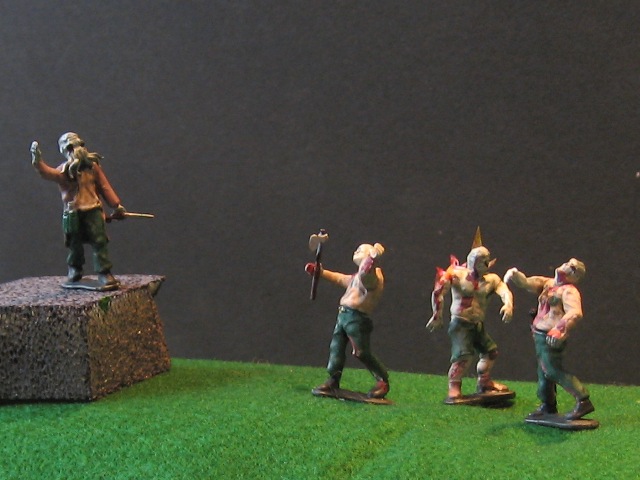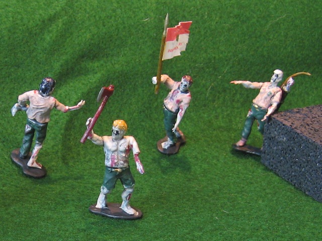 (carrying a leg in his left hand), a fire safety zed with a fireaxe,